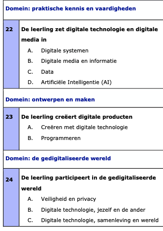 De kerndoelen digitale geletterdheid zijn onderverdeeld in drie domeinen: de